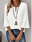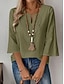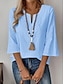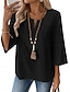 Femmes Chemise d'été Chemise Décontractée Chemisier Boutons Sweat Couleur Unie Vacances Élégant Occasionnel Manche 3/4 Col en V Hauts Réguliers Quotidien Plage Fête Noir Blanche Orange Été Printemps