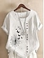 Femmes Chemisier Boutons Imprimé Fleuri Graphique ancien Tropical Élégant Manche Courte Hauts Longs Occasionnel Fête Bleu Vert herbe Blanche Violet Vert Été Printemps