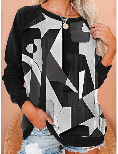 Femmes Sweat-shirts Graphique Géométrique Mode Occasionnel manche longue Col ras du cou Hauts Réguliers Occasionnel Imprimé Blanche Rouge Bleu Violet Vert Été Printemps Automne