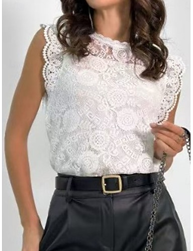Femmes Hauts d'été Chemisier Haut à œillets Hauts en dentelle Froncé Dentelle Patchwork Fleuri Graphique Uni Élégant Dames Classique Sans manches Col ras du cou Hauts Réguliers Quotidien Travail Fête