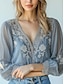 Femmes Chemise Chemisier Maille Fleuri ancien Élégant Classique manche longue Col en V Hauts Réguliers Quotidien Fête Sortir Bleu Printemps Automne