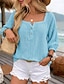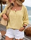 Femmes Chemisier Couleur Unie Uni Quotidien Élégant Basique Manche 3/4 Col carré Hauts courts Quotidien Bleu Jaune Rose Claire Été Printemps