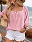 Femmes T-shirt Faux coton lin Avec Poches Uni Basique Moderne Manche 3/4 Col ras du cou Hauts Réguliers Quotidien Vert Claire Kaki Beige Gris Été
