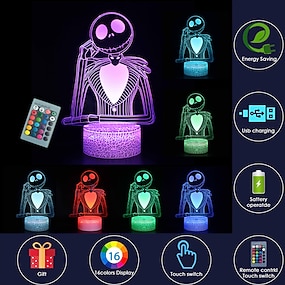 halloween 3d illusion night light halloween ville citrouille roi jack skellington 16 couleurs avec télécommande pour chambre décor lampe de bureau creative éclairage cadeaux pour enfants d'anniversaire de noël
