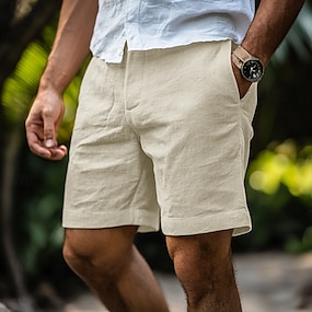 Homme Shorts en Lin Robe Short Shorts d'été Shorts de plage Fermeture éclair Avec Poches Boutons Couleur Unie Uni Confort Doux Longueur Genou Extérieur Occasionnel Quotidien Vacances Mode Noir Blanche