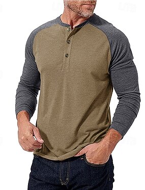 Homme T-shirt à boutons T-shirt Chemise Henley Chemise à Manches Longues manche longue Henley Printemps & Automne Bloc de Couleur Mode Designer Basique Patchwork Vacances Rue Sortir Noir Rouge Fonc