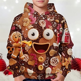 Noël Garçons 3D Graphique Bonhomme en pain d'épices Sweat à Capuche manche longue Printemps Automne Mode Streetwear Enfants 4-12 ans À capuche Extérieur Occasionnel Quotidien Coupe régulière
