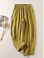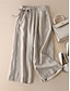 Femme Mode Vêtement de rue Chino Sarouel Poches latérales Bouffant Conception de cordon élastique Toute la longueur Pantalon Casual Fin de semaine Micro-élastique Plein Mélange de Lin & Coton Confort