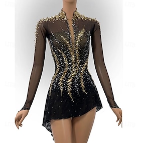Robe de Patinage Artistique Femme Fille Patinage Robes Noir Blanche Jaune Dos ouvert Maille Spandex Haute élasticité Entraînement Compétition Tenue de Patinage A Bijoux Strass manche longue Patinage