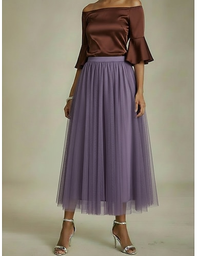 Femmes Jupe en mousseline Jupe de vacances Élégant Mode Maxi Taille Basse Jupes Uni Maille Non Elastique Quotidien Rue Améthyste Noir Blanche Rouge Été Polyester
