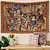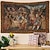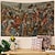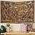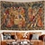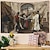 Tapisserie murale gothique antique représentant une scène de village médiéval, des personnages de la Renaissance, un château et une fête des vendanges. Idéale pour décorer un salon, une chambre ou