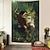 Tapisserie murale florale sombre, style gothique flamand antique, inspirée de la Renaissance médiévale et de la vie de cour, représentant des figures nobles. Idéale pour le salon, la chambre ou la