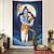 Tapisserie murale artistique surréaliste représentant une femme tenant des visages, dans un style gothique unique et sombre, idéale pour une chambre, un salon ou un studio. Elle peut servir de fond