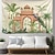 Tapisserie murale vintage indienne de style moghol, ornée de paons, de palmiers tropicaux et évoquant un palais, un pavillon ou un jardin. Idéale pour le salon, la chambre ou une chambre d'étudiant,