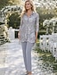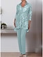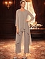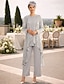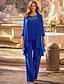 Combinaison Tailleur-Pantalon Trois Pièces Longueur au sol Robe de Mère de Mariée Manche 3/4 Col Rond Élégant Formel robe demoiselle d honneur Chiffon Dentelle Pailleté avec Dentelle Paillettes