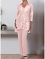 Combinaison Tailleur-Pantalon Trois Pièces Longueur au sol Robe de Mère de Mariée manche longue Col Illusion Élégant robe demoiselle d honneur Soirée Formelle Chiffon Dentelle avec Fronces Couleur