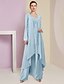 Tailleur Pantalon Asymétrique Robe de Mère de Mariée manche longue Col ras du cou Élégant Formel robe demoiselle d honneur Soirée Formelle Chiffon avec Couleur Unie