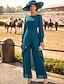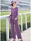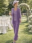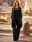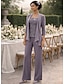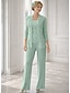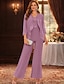 Combinaison Tailleur-Pantalon Trois Pièces Longueur au sol Robe de Mère de Mariée manche longue Bijoux Élégant Formel robe demoiselle d honneur Chiffon Echarpe incluse avec Dentelle Volants Broderie
