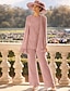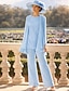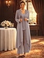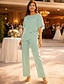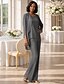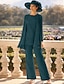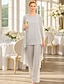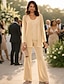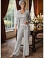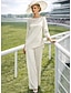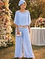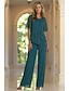Tailleur Pantalon Longueur au sol Robe de Mère de Mariée manche longue Col Rond Élégant Simple robe demoiselle d honneur Soirée Formelle Fête de mariage avec Appliques Couleur Unie