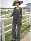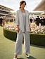 Combinaison Tailleur-Pantalon Trois Pièces Longueur au sol Robe de Mère de Mariée Sans manches Col en V Élégant Fête Formel robe demoiselle d honneur Dentelle Mélange Lin-Coton Robes avec Veste avec