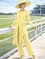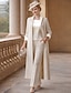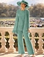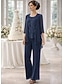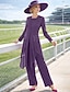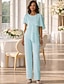 Combinaison Tailleur-Pantalon Trois Pièces Tailleur Pantalon Longueur cheville Robe de Mère de Mariée Demi Manches Col Bateau Élégant ancien Simple Formel robe demoiselle d honneur Chiffon Extensible