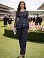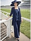 Deux Pièces Combinaison Tailleur-Pantalon Longueur cheville Robe de Mère de Mariée Demi Manches Col de chemise Élégant Formel robe demoiselle d honneur Satin avec Noeud(s)
