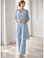 Ligne A Trois Pièces Tailleur Pantalon Longueur au sol Robe de Mère de Mariée Sans manches manche longue Bretelles spaghetti Élégant Formel robe demoiselle d honneur Chiffon Dentelle à Cordon