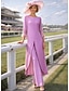 Combinaison Tailleur-Pantalon Longueur au sol Robe de Mère de Mariée Sans manches Col Bateau Élégant Grande taille robe demoiselle d honneur Chiffon Echarpe incluse avec Couleur Unie