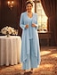 Deux Pièces Combinaison Tailleur-Pantalon Longueur au sol Robe de Mère de Mariée manche longue Col en V Élégant Grande taille robe demoiselle d honneur Chiffon avec Volants