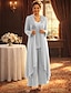 Combinaison Tailleur-Pantalon Trois Pièces Longueur au sol Robe de Mère de Mariée manche longue Col en V Élégant Formel robe demoiselle d honneur Chiffon Dentelle Robes avec Veste avec Appliques