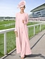 Combinaison Tailleur-Pantalon Longueur au sol Robe de Mère de Mariée Manche 3/4 Bijoux Élégant Simple Minimaliste Formel robe demoiselle d honneur Satin Echarpe incluse avec Couleur Unie