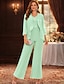 Combinaison Tailleur-Pantalon Trois Pièces Longueur cheville Robe de Mère de Mariée Manche 3/4 Col en V Élégant Grande taille Formel robe demoiselle d honneur Chiffon Dentelle Echarpe incluse avec