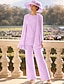 Costume-pantalon longueur sol Robe de la mère de la mariée Manches longues Col rond Élégante Simple Invité de mariage avec Couleur unie
