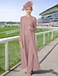Trois Pièces Longueur cheville Robe de Mère de Mariée manche longue Col Rond Élégant Simple robe demoiselle d honneur Fête de mariage Réunion de famille Chiffon Dentelle avec Couleur Unie