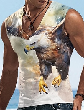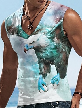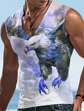 Homme Graphique Animal Aigle Débardeur T-shirt sans manches pour hommes Sans manches T-shirt Impression 3D Col en V Chemise Designer Occasionnel Muscle Sports Course Salle de sport Bleu Violet Marron
