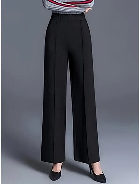 Femmes Pantalons Dress Pants works Pantalons Amples Élégant Mode Streetwear Longueur complète Taille haute Uni Avec Poches Taille Élastique Jambe Droite Doux Confortable Respirant Micro-Élastique