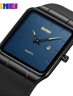 Montres à quartz SKMEI cadeau pour hommes montres à mouvement quartz japonais cadran large de luxe montre analogique à la mode avec calendrier étanche 3Bar montre pour homme avec bracelet en silicone.