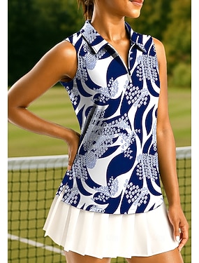 Femmes Géométrique T-shirt de sport T-shirt POLO Débardeur Chemise de tennis Sans manches Fermeture éclair UPF50+ Résistant aux UV Haute élasticité Évacuation de l'Humidité Respirant Tennis