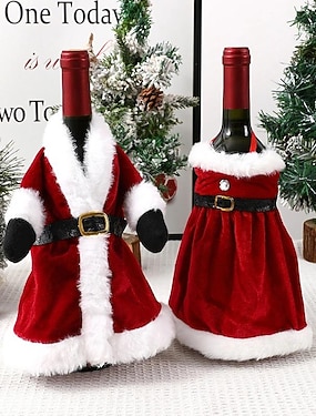 décoration de vin de Noël sac de vin rouge créatif, couverture de bouteille de vin de robe de Noël, décoration de bouteille de vin de jupe de Noël, couverture de vin rouge de Noël