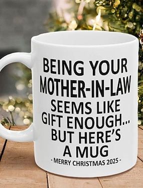 Tasse cadeau de Noël 2025, être votre belle-mère, tasse drôle de 11 oz, tasse à café de vacances de belle-mère, cadeau de Noël hilarant, verres de saison d'anniversaire de famille