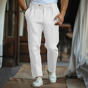 Homme Blazer en lin Col cranté Mode Classique Occasionnel Couleur Unie Blazer en lin Noir Blanche Rose Claire Coupe sur mesure à boutonnage simple à 2 boutons