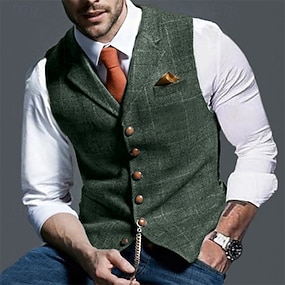 Homme Gilet Formel Mariage Travail Entreprise Entreprise Décontractées Printemps Automne Poche Polyester Chaud Séchage rapide Tartan Double Boutonnage Col rabattu Standard Bleu Vert Kaki Gris Gilet