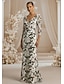 Fourreau Colonne Longueur au sol Broderie perlée Robe de Cérémonie Robe de la mère de la mariée Robes de Bal Robe de Soirée Tenue de soirée Élégant Bloc de Couleur Fente Haute Demi Manches Col