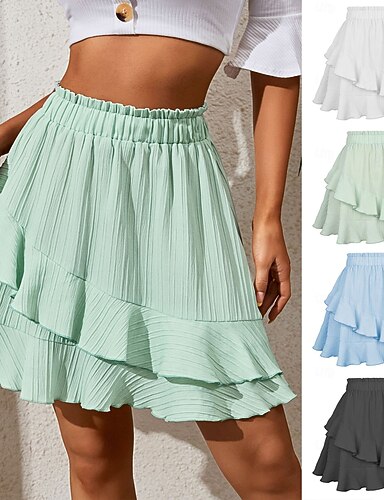 Femmes Jupe de vacances Mode Occasionnel Mini Taille haute Jupes Uni A Volants Élastique Quotidien Rue Bleu Noir Blanche Vert Été 95 % polyester, 5 % élasthanne