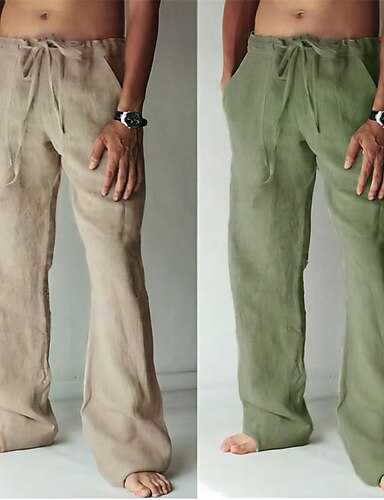 Homme Pantalons en Lin Pantalons Pantalon d'été Pantalons de Plage Cordon de serrage Avec Poches Taille Élastique Uni Quotidien Vêtements de rue Mode Occasionnel Noir Blanche