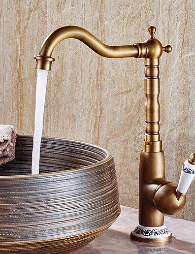 Robinet de lavabo utilitaire de luxe de style rétro, ensemble central à arc élevé, une poignée en céramique, un trou, robinet de lavabo avec interrupteur d'eau chaude et froide, robinet commercial de