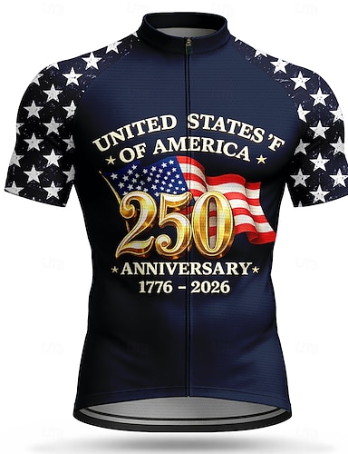 250e anniversaire de l'Amérique Jour de l'Indépendance Fête nationale américaine Hommes Maillot de cyclisme Drapeau Américain Drapeau / Drapeau national Manche Courte Cyclisme Maillot Top avec 3