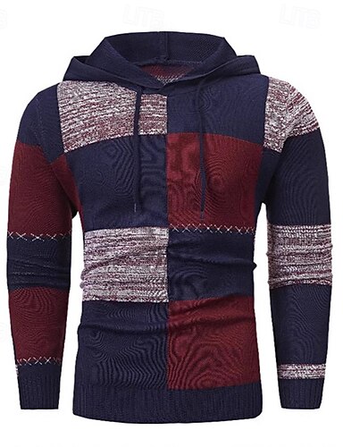 Homme Pull Pull Tricoté Côtelé Tricoter Hauts Réguliers Tricoté Plaid À capuche Mode Basique Vacances Tenue quotidienne Vêtement Tenue Automne Hiver Vin Noir S M L