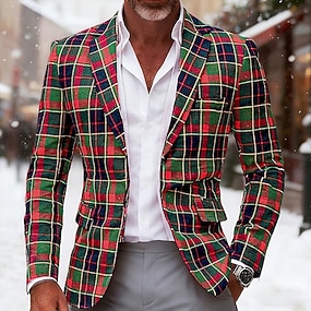 Homme Veste blazer Affaires Travail Soirée ancien Mode Automne Hiver Tergal Plaid Droit 1 bouton veste Rouge