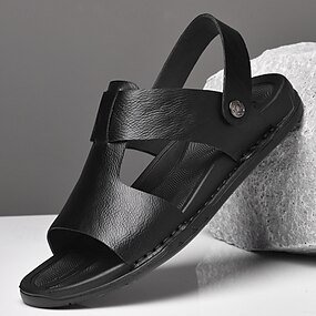 sandales en cuir noir pour hommes avec bride réglable, design croisé élégant pour une tenue décontractée, en plein air et en été